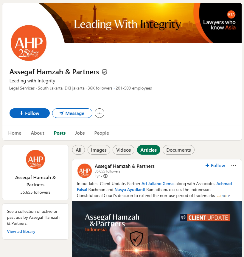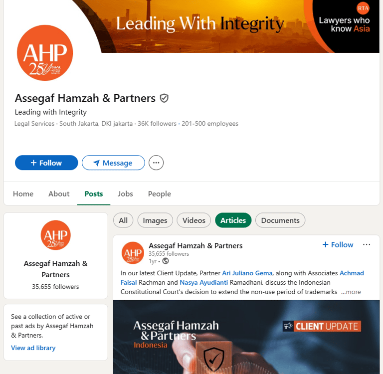 Tampilan firma hukum Assegaf Hamzah & Partners di LinkedIn